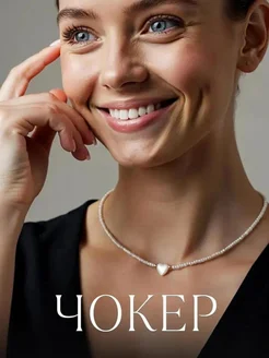 Чокер с сердечком из бисера украшение на шею колье