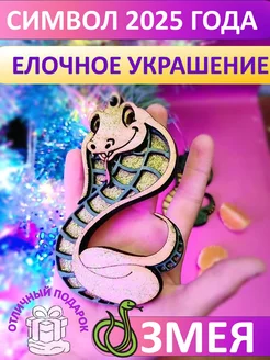 Елочная игрушка змея из дерева зелено-желтая 2025