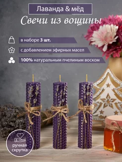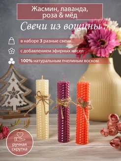 Подарочный набор аромасвечей из вощины жасмин лаванда роза
