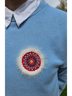 Этническая брошь «Солнышко» из меха норки и бисера