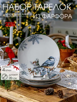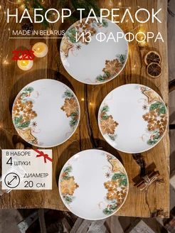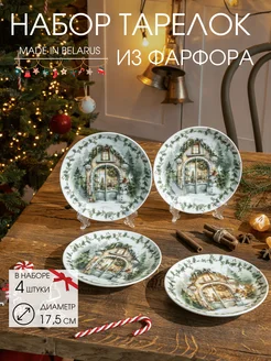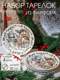 Тарелка фарфоровая кухонная новогодняя, набор 4 шт