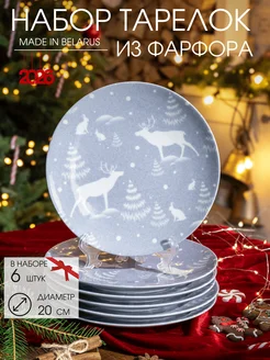 Тарелка фарфоровая кухонная новый год, набор 6 шт