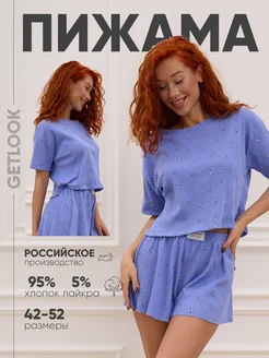 Пижама с шортами и футболкой оверсайз домашний костюм