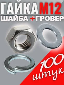 Гайка Шестигранная М12, DIN 934, шайбы, гровер