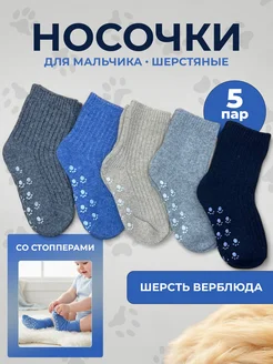 Носки шерстяные для мальчика со стопперами набор 5 пар