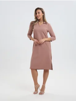 Платье офисное трикотажное с разрезом с рукавом