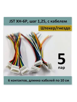 Разъем 6pin JST XH 1,25 мм штек гн с проводами - 5 пар