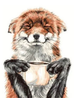 Картина по номерам Хитрый Лис с кофе на холсте 40*50