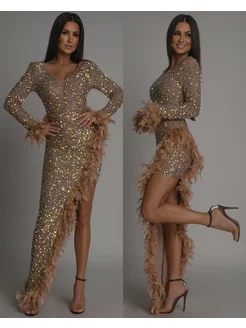 вечернее платье с пайетками и перьями + plus size