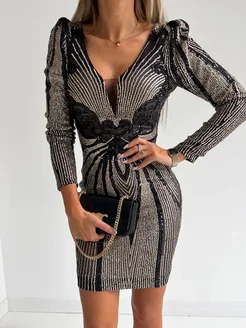 золотисто-черное платье с пайетками + PLUS SIZE