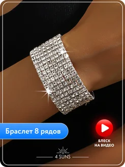 Браслет со стразами блестящий широкий 8 рядов новогодний