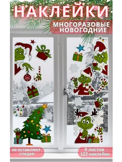 Наклейки на окна Гринч 9 листов, Новогодние украшения
