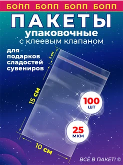 БОПП пакеты с клеевым клапаном 10х15 см 100 штук