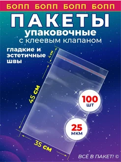 Пакеты БОПП упаковочные с клеевым клапаном 35х45 см 100 штук