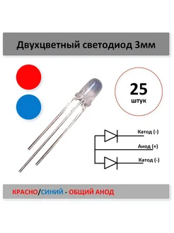 Двухцветный светодиод - красно-синий 3мм - 25 шт. общ анод