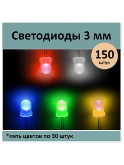Светодиоды 3 мм - пять цветов - 150 шт. прозрачные