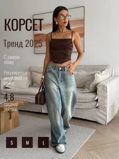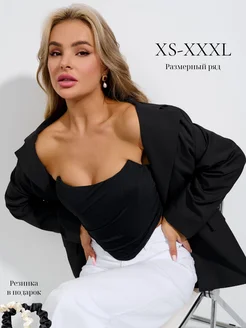 Топ корсет вечерний черный под пиджак атласный со шнуровкой