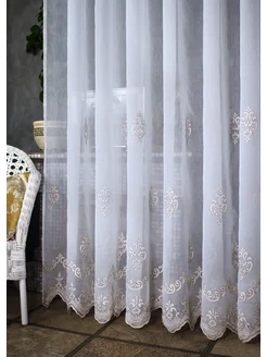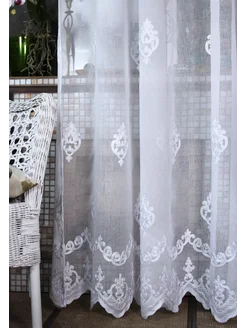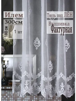 Тюль лен 300х180 короткий с вышивкой Солнуша