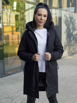 Удлинённая куртка парка с капюшоном оверсайз на осень