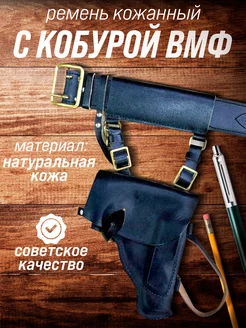 Ремень ВМФ офицерский кожаный СССР с кобурой от ПМ
