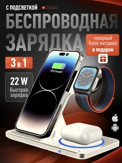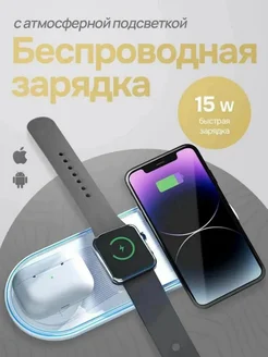 Беспроводная зарядка 3 в 1 для iphone и андроид