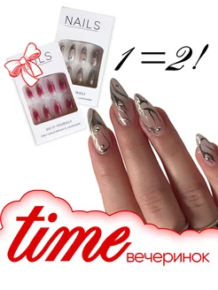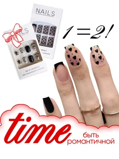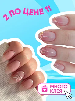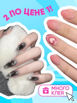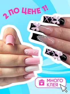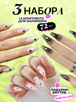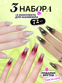 Накладные ногти длинные c дизайном и клеем 3 набора