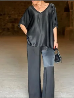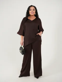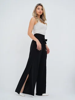 Брюки палаццо широкие на завязках с запахом и разрезами