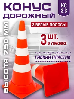 Конус дорожный сигнальный 750 мм 3 белые полосы 3шт