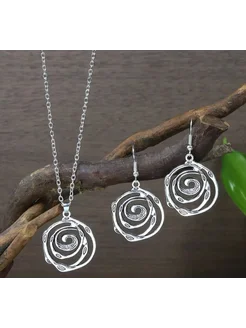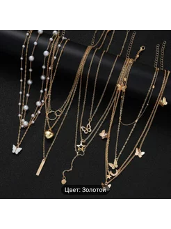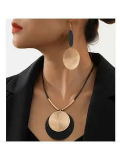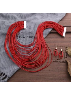 Комплект многослойное колье и серьги в стиле этнической кожи