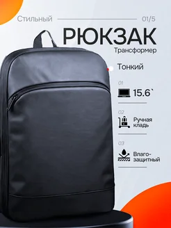 Рюкзак черный городской трансформер для ноутбука 15.6