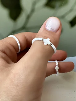 Кольцо белый бисер