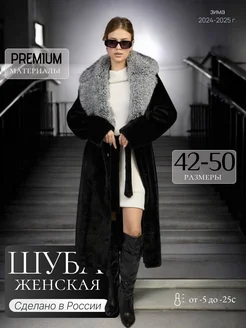 Шуба искусственная с поясом экошуба из эконорки длинная