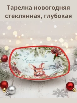 Тарелка новогодняя Заяц, стеклянная 20см