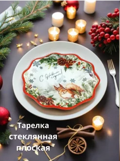 Тарелка новогодняя белка, стеклянная 20 см