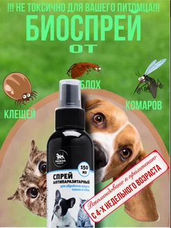 Спрей от блох, комаров и клещей для собак и кошек, 150 мл