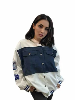 бомбер рубашка летний с джинсовыми вставками оверсайз
