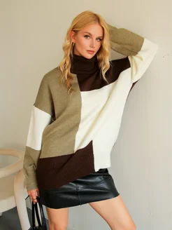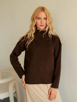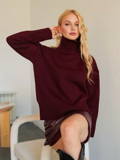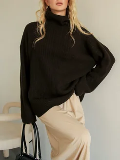 Свитер вязаный с горлом оверсайз теплый
