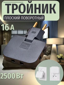Тройник поворотный для розетки плоский разветвитель 250 V