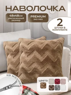 Декоративная меховая наволочка на молнии 48х48 2 штуки