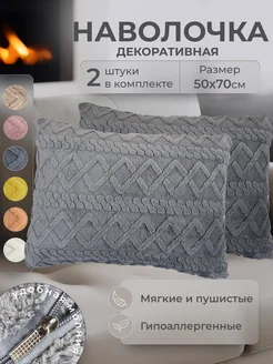 Декоративная меховая наволочка на молнии 50х70 2 штуки
