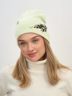 Шапка теплая тонкая со стразами