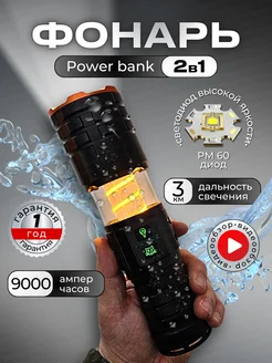 Фонарик аккумуляторный кемпинговый с магнитом и Power bank