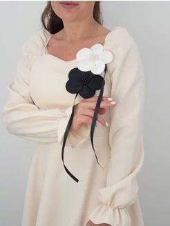Брошь 2 цветка черный и белый