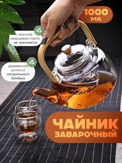 Чайник стеклянный заварочный бочонок, 1000 мл