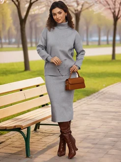 Костюм трикотажный с юбкой теплый