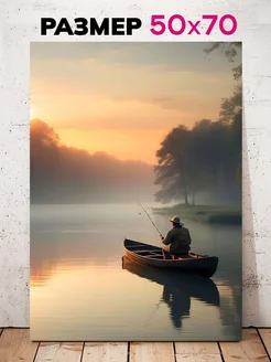 Картина на стену для дома Рыбак в лодке на рассвете 50х70