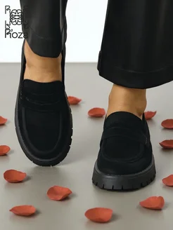 Лоферы замшевые на платформе