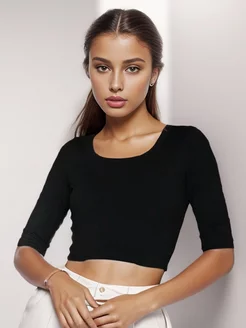 Кроп топ в рубчик с вырезом с рукавами 1 2