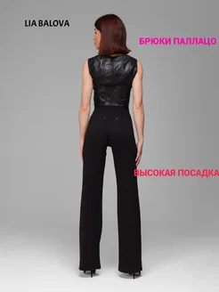 Брюки палаццо трикотажные на резинке офисные штаны клеш