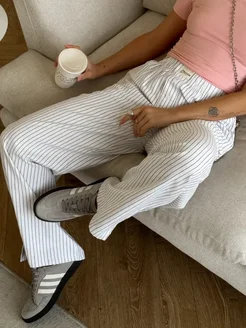 Штаны пижамные в полоску на резинке домашние летние